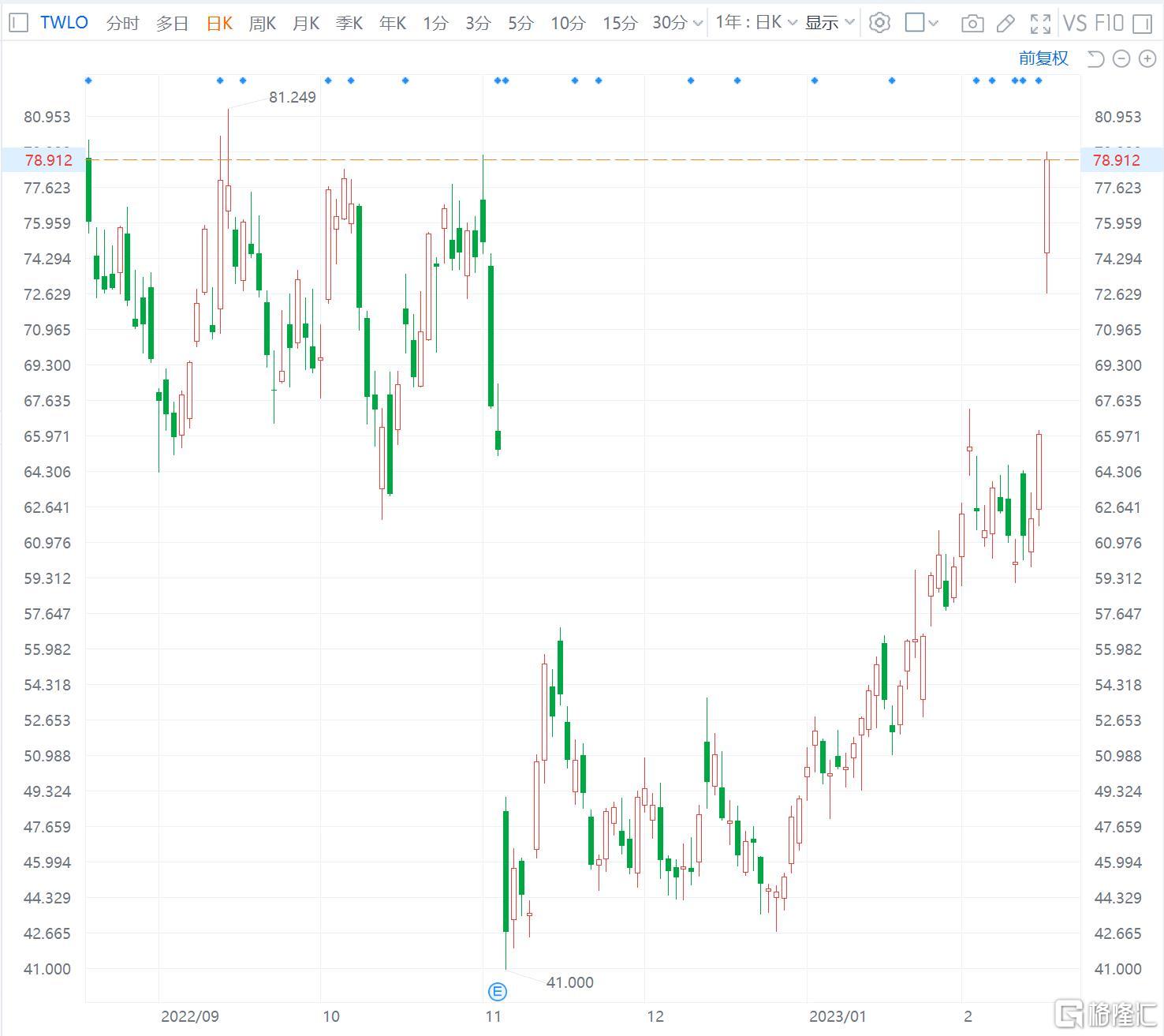 格隆汇2月16日丨Twilio(TWLO.US)涨19.65%,报79.03美元,总市值145.68亿美元。公司宣布第四季度收入为10.2亿美元,同比增长22%,超出预期10亿美元;每股收益为0.22 美元,上年同期为-0.20美元。此外,公司宣布了10亿美元的回购计划。